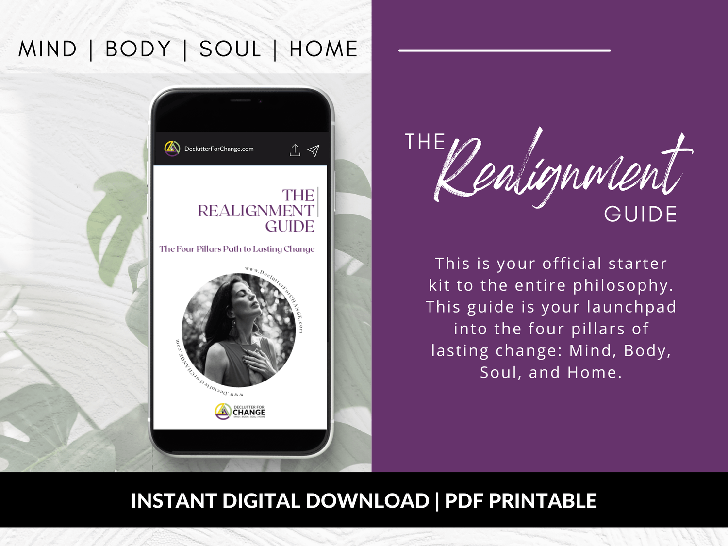 Your official starter kit. Get the foundational framework for the 4 pillars (MIND, BODY, SOUL, HOME) and clear mental clutter to start your transformation today.