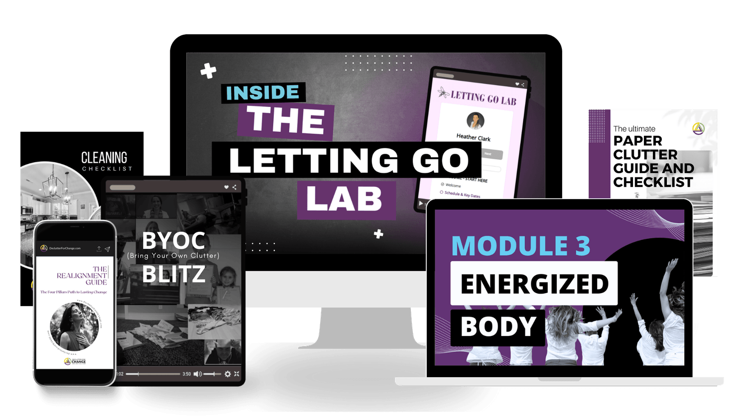 The Letting Go Lab includes 6 Core Modules of guided lessons and powerful exercises designed to walk you through the 3 Phases of Decluttering using our proven Holistic Alignment Framework.